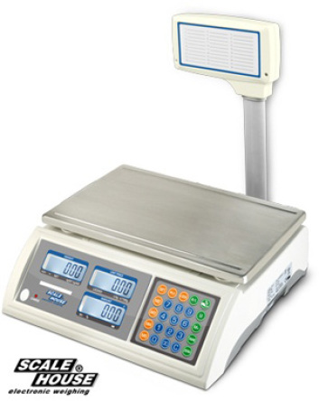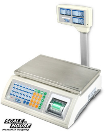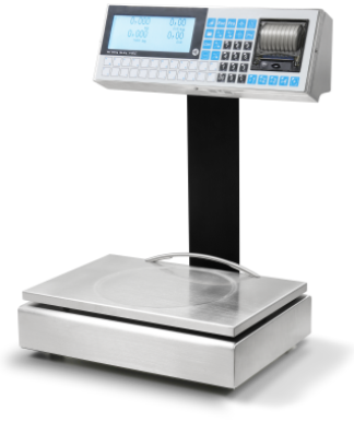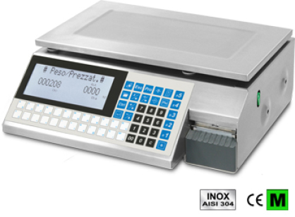 SCHEDA TECNICABilancia Peso-Prezzo-Importo a doppia scala con colonna, per uso commerciale. Collegabile a stampante, per funzione di totalizzazione importo. Memoria 105 PLU (5 da tasti diretti).